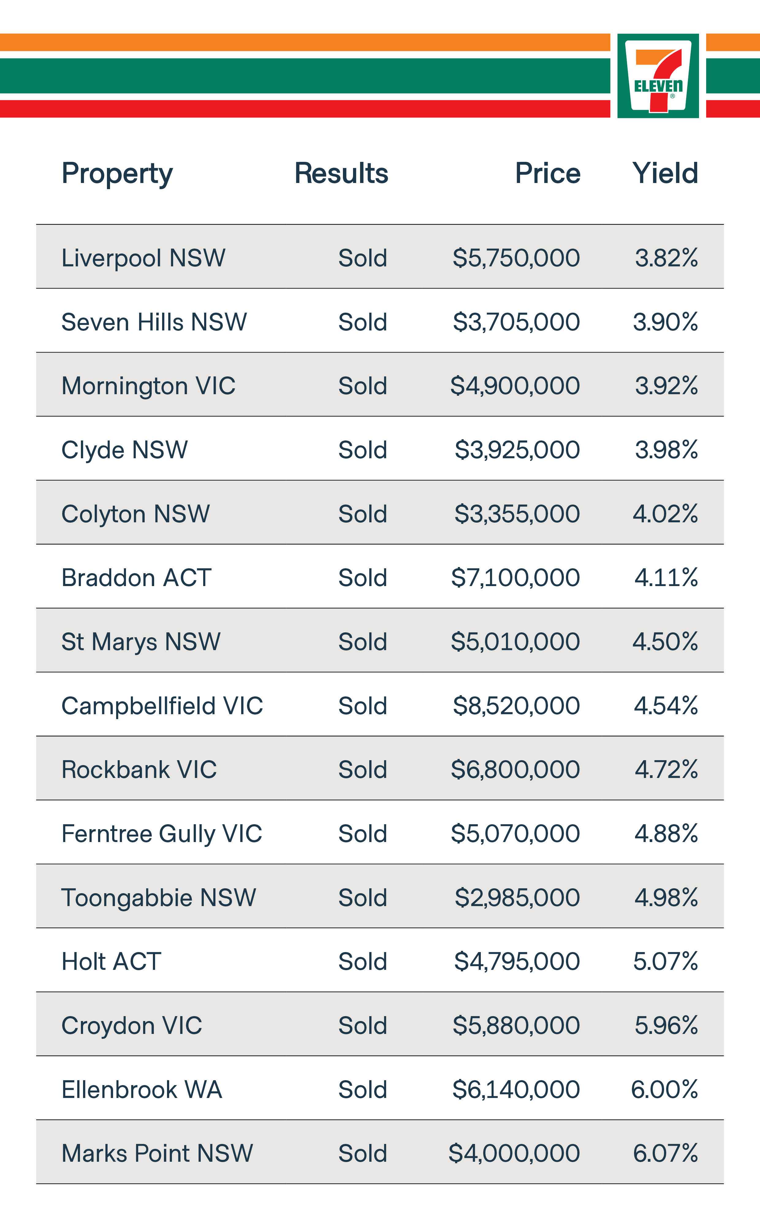 Of the seven assets listed in New South Wales, an outlet in Liverpool was the most expensive, achieving $5.75 million.